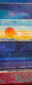 Anneli is a mixed media paper artist who studied at the University of Hertfordshire gaining a BA Hons in Art and Design. Her trademark features the use of strong bright colours. Her work features minimalist abstract images using self prepared papers and prints which are often perceived as landscapes. Recent work has seemingly random patterned forms that merge into intricate designs. Her work is equally suitable as finishing touches for residential or commercial interiors.