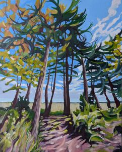 Sara captures the atmosphere of the North Norfolk coast through her expressive paintings in oil and acrylic. Informed by her background in textiles, she uses bold pattern and colour to convey her deep connection with the landscape.